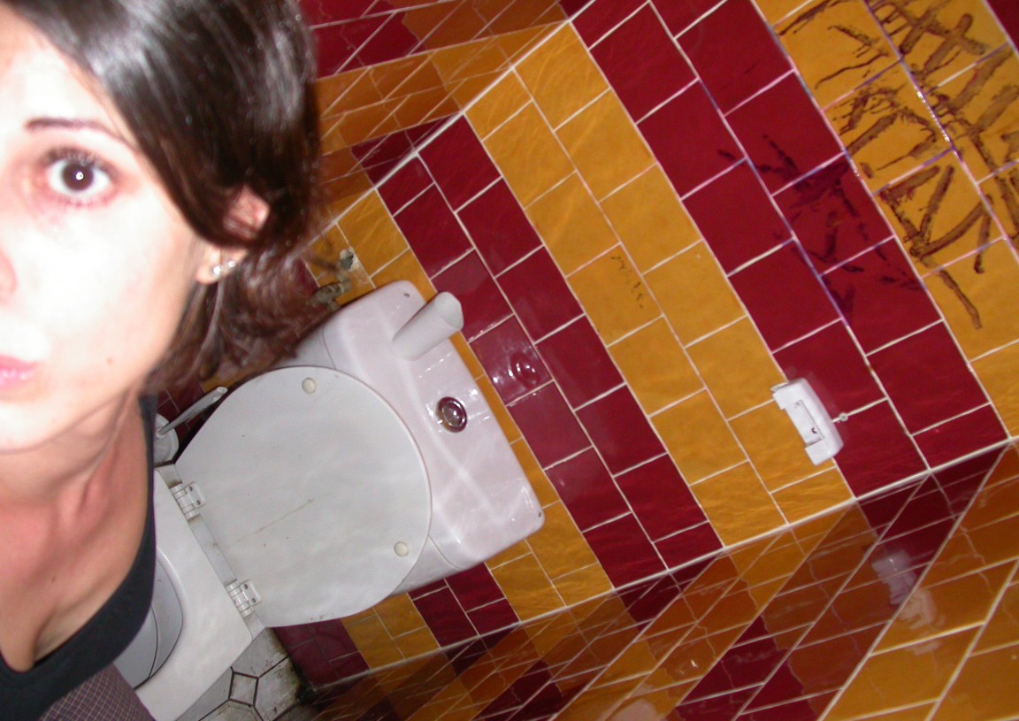 — La photographe Claire Béguier continuera sa pratique annexe de « photos de chiottes » dans les lieux participants. Partout où il y a des toilettes, Claire finit par y voir un studio. Dans ces espaces de transit, elle ne tire pas la chasse, mais des « autoportraits pris sur l’instant, avec un téléphone portable et diffusés sur Facebook. »