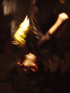 Une performance présentée aux Ateliers de Lorette orchestre magistralement cet entrelacement entre images intérieures et images extérieures. Elle se présente sous la forme d’une installation habitée, constituée d’un espace de projection et d’un danseur de cirque, Laurent Chanel, dont l’évolution retrace le parcours d’un voyage introspectif au travers de notre corps et de ses dynamiques sensitives. Les projections sur écrans transparents placés sur scène sont les doubles imaginaires des mouvements du danseur. Les images et les gestes se répondent, s’appellent par un mouvement de va-et-vient, et forment un tout — dynamique, organique, indissociable. Extérieur et intérieur du corps communiquent, s’échangent, s’intègrent.