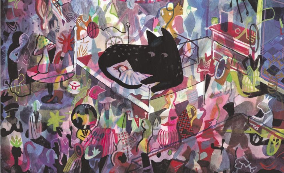 « Avant, j’étais un dessinateur à traits. » Mais ça, c’était avant… Voilà qui donne le ton (coloré) du travail de Brecht Evens, vétéran des Rencontres, exposé au Palais de l’Archevêché. Très justement installé dans la crypte, le dispositif d’exposition fait écho à l’immanence du lieu et offre au spectateur un chatoiement de couleurs. Le travail de l’artiste, en s’écartant du tracé, parvient à reconstituer des ambiances délicates, tendant à « recréer ce flou, ce mouvement constant de la vie. » Le jeu sur la matière de la couleur et sa transparence, son rapport au cubisme, ainsi que les sujets abordés, confèrent une forme de spiritualité aux planches, franchement accentuée par de grands vitraux colorés qui en reprennent des détails des planches. Le ton affiché se révèle sensible et déconcertant : l’auteur déconstruit de manière dérangeante certains modèles ou reprend d’autres thèmes à l’envi, comme l’espace de la fête. Le résultat, poignant, semble être un passage incontournable du festival.